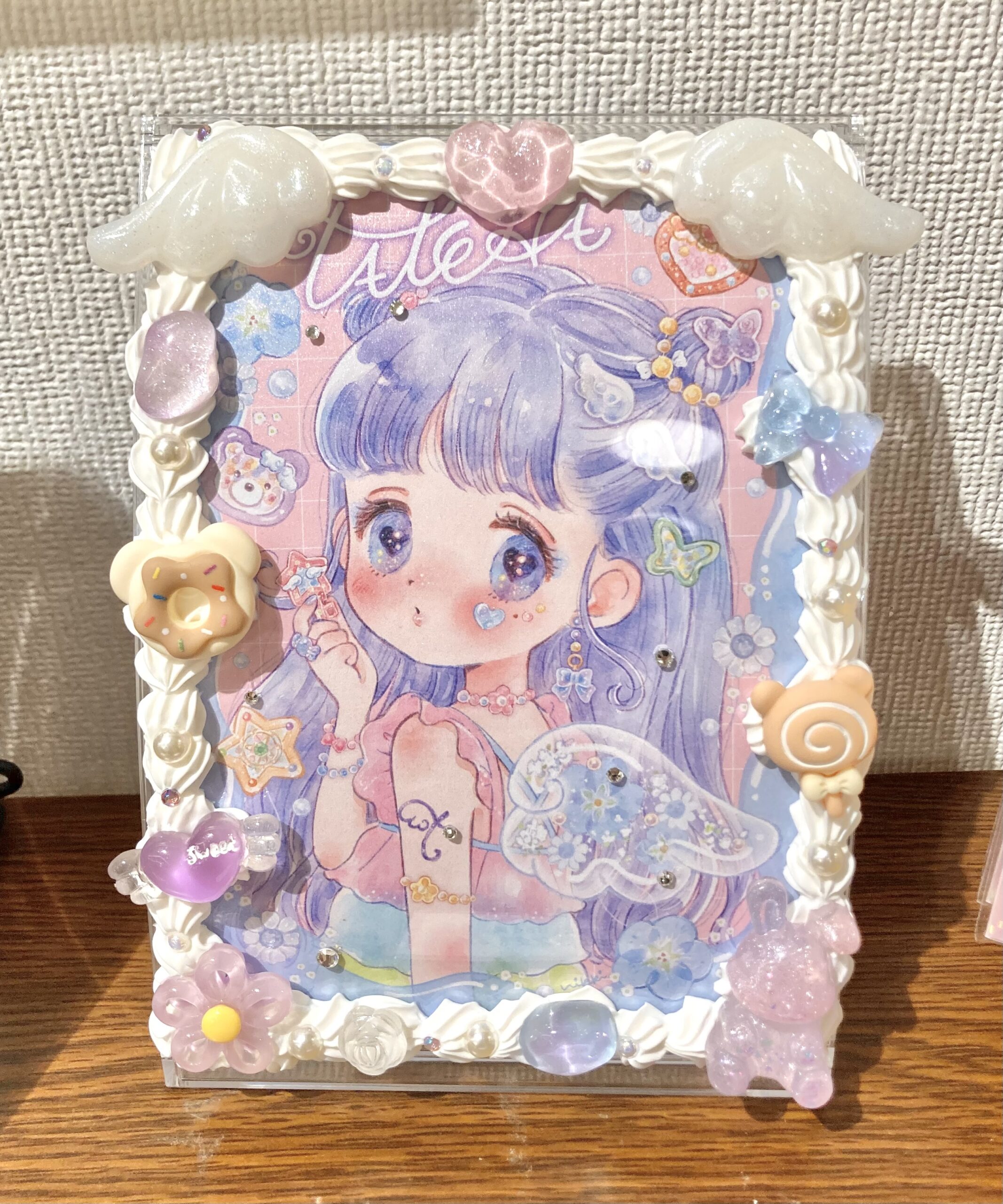 以前ショップのビジュアルを描かせて頂いたアトリエタテハさんがデコフレームを持ってきてくださいました。