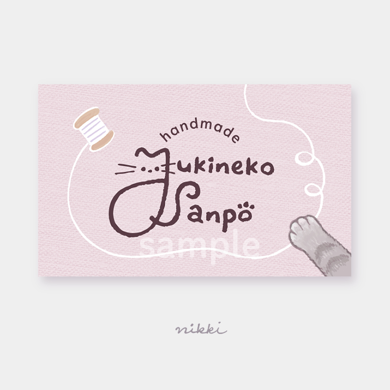 個人ご依頼で、ハンドメイドの布小物ショップ「幸猫さんぽ」さまのロゴと名刺を作成させていただきました。